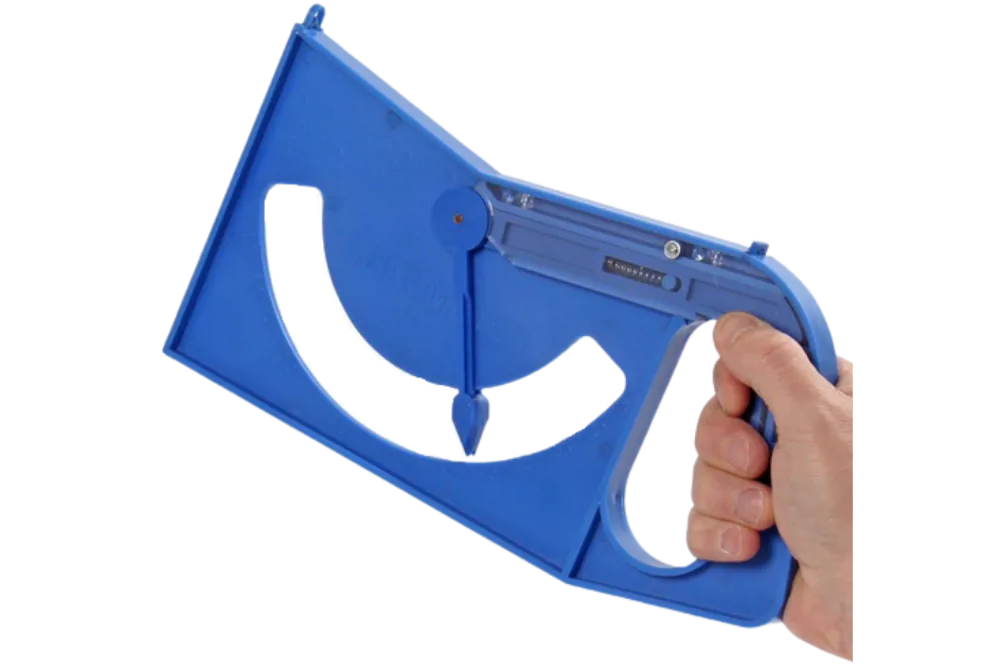 This clinometer is a simple protractor made of impact-resistant plastic, equipped with a pistol grip for easy aiming. The instrument is used to measure the slope or height of distant objects such as trees, towers or buildings. Using trigonometric calculations, heights and distances can be calculated from the measured angles.