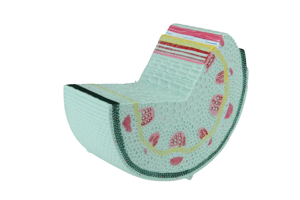 The model is suitable for teaching biology, plant anatomy and botany. It gives students a three-dimensional image of the plant’s vascular systems, and can be supplemented with homemade or pre-prepared microscope slides of the same structures.